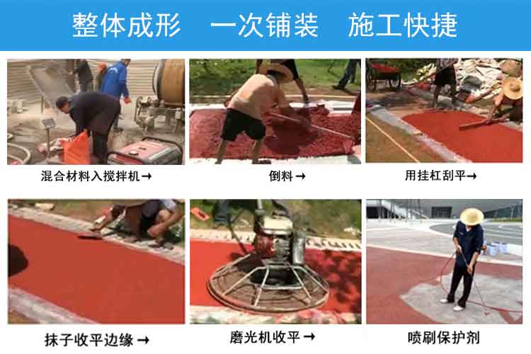 1.攪拌:透水地坪拌合物中水泥漿的稠度較大,且數(shù)量較少,為了使水泥漿能保證均勻地包裹在骨科上,宜采用強(qiáng)制式攪拌機(jī),攪拌時間為5min以上。